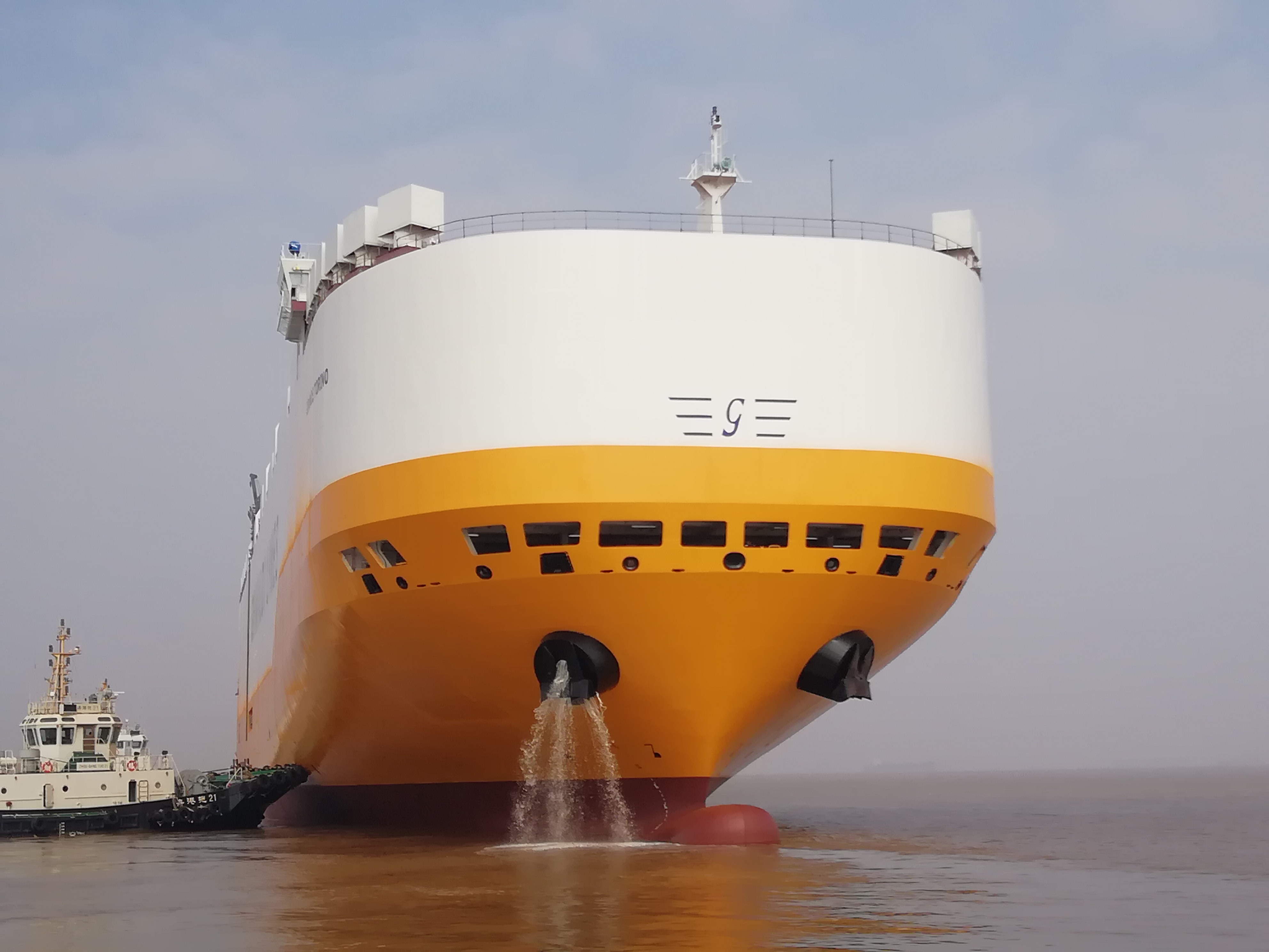 揚帆集團7800車汽車滾裝船首制船出塢