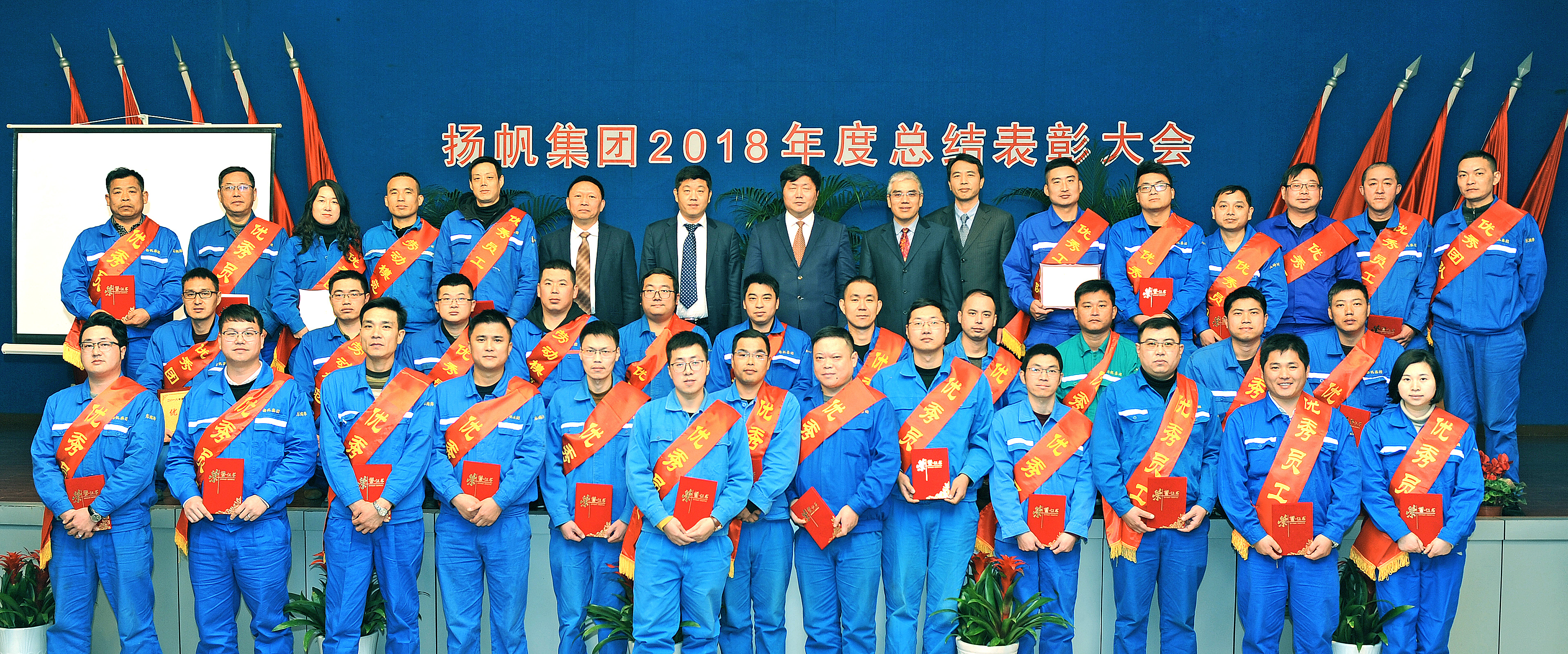 2019年1月28日,揚帆集團2018年度總結表彰大會召開,240余位員工代表濟濟一堂,集團總裁陶忠海,副總裁蔡輝華、張濟,總裁助理盧洪斌等出席會議,大會由集團黨委書記鄒元龍主持。大會對設計院等3個優秀團隊、鼎翔隊等2個優秀工程隊、李杰等3名勞動模范、葉財增等33名優秀員工、白金玉等8名優秀班組長(工程隊)、張海榮等28名工程隊優秀員工進行表彰。